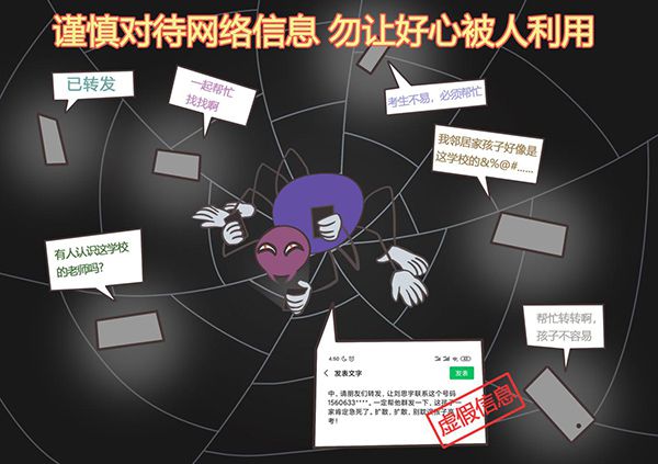 据教育部网站消息,每年高考前夕,网上总会有些不良机构或不法分子借高考之机炒作一些虚假信息,误导考生和公众。为此,教育部联合中央网信办、公安部等部门梳理汇总了近年来出现频率较高的高考假新闻、假信息,提醒广大考生和家长,明辨网络谣言,谨防上当受骗。希望各网站不为谣言提供平台,希望网民不信谣、不传谣。 一、盲信“神押题”,考生泪两行 每年都会有不法分子在网络平台或交流群中兜售所谓“高考真题”“绝密答案”等,标榜“准确率极高”“违约退款”等诱惑信息,并以“预付订金”等名义要求用户先付款。有的不法分子声称可以花钱雇佣“枪手”替考,还有的借传送“样题试卷”的名义向用户电脑或手机发送病毒,套取用户信息。 (作者:西安美术学院王芊芊) 【案例】2019年6月12日,山东济南警方破获一起网络售卖高考押题试卷骗取考生家长钱财的案件。据民警介绍,数万元一套的高考押题试卷,其实是嫌疑人李某花几百元从书店和网上买来的普通考试试卷。李某利用家长想提高孩子高考成绩的急切心理,冒充某知名辅导机构负责人向家长兜售所谓“高考押题试卷”,骗取多位家长钱财共计十余万元。2019年7月,红星新闻报道一名在校大学生高考当枪手被判刑期4年6个月。 【提醒】高考试题属于国家绝密级材料,其保管和运送都有严格的管理措施,所有接触试卷的人员都实行封闭式管理。广大考生及家长不要存在侥幸心理,不要相信那些能提前拿到高考真题或答案的言论。不要在网上购买所谓“高考真题”“绝密答案”等。购买涉密材料,本身也是违法行为。 《中华人民共和国刑法》明确规定,在法律规定的国家考试中,“组织作弊的”“为他人实施前款犯罪提供作弊器材或者其他帮助的”“为实施考试作弊行为,向他人非法出售或者提供第一款规定的考试的试题、答案的”“代替他人或者让他人代替自己参加第一款规定的考试的”,都属于违法行为。《最高人民法院、最高人民检察院关于办理组织考试作弊等刑事案件适用法律若干问题解释》明确,对在高考、研究生考试以及司法考试等4大类“法律规定的国家考试”中组织作弊的,处三年以上七年以下有期徒刑并处罚金。 二、招生政策熟于心,骗子只能绕道行 不法分子往往利用考生和家长不熟悉高考相关招生政策实施诈骗。有的声称不用看分数,只要花钱就能搞定;有的吹嘘自己可以弄到某某大学定向招生计划,保证录取,公开叫价,收取高额“定向费”。 (作者:西安美术学院王芊芊) 【案例】李某在朋友交往中得知,高某的独子即将参加高考,遂告知对方,其舅舅在北京一知名高校任教授,可通过“内部指标”帮孩子上大学,只要肯花钱就行。高某孩子的高考成绩出来后,分数只能上三类本科院校。心有不甘的高某找到李某求助,并根据对方要求支付了15万元“活动”经费。高某也拿到了李某带来的录取通知书,但与此前承诺不同的是,通知书上的录取学校是一所并不知名的学院。对此,李某解释称,孩子只是暂时先在该学院军训,结束后就可以转入之前所说的名校读书。然而,军训结束后,孩子仍然在这所不知名学院读书,同时,高某还了解到,这家学院面向社会招生,并不局限于高中毕业生,毕业后也无法提供国家承认的学历,与李某声称的知名高校更是没有任何关联。意识到被骗的高某立即向公安机关报案。最终,李某被法院认定为实施诈骗罪并被判刑,此前骗取的十几万元也如数退还给高某,但此时距高校开学已过去数月,其他落榜考生也早已开始复读。 【提醒】高考招生制度是国家基本教育制度。经过40多年不断改进完善,我国已经建立起了一整套科学规范、监督有力、公平公正的考试招生体制机制。高考招生录取工作都是在网上进行,并严格执行已公布的招生计划,根本不存在所谓的“内部指标”,更不会向家长收取高额费用。 三、网上常有假信息,提醒网民擦亮眼 以往高考期间,网上经常流传××考生准考证丢失的信息。广大网民看到后替考生着急,迅速在群内和朋友圈转发,短时间形成影响范围较大的舆情。有不法分子往往借此虚构情景骗取网民同情,提供虚假信息,所留手机号多为吸费音讯电话。若有好心人按照电话号码回拨,并且按电话提示音操作,就可能掉入吸费陷阱。也有网民虚构捡到“试卷”消息,借高考话题散布虚假信息博取关注。 (作者:西安美术学院王芊芊) 【案例1】2019年高考开考前夕,微信群、朋友圈等网络平台流传着一则虚假信息,声称“捡到一张高考准考证,刘思宇,考点在实验高中,请朋友们转发,让刘思宇联系这个号码1560633****。一定帮他群发一下,这孩子一家肯定急死了。扩散,扩散,别耽误孩子高考!”从2016年“白娅倩”、2017的“杨雷雷”“孙超”“党喜龙”、2018年“刘明炜”“刘明婷”等同学到2019年的“刘思宇”,年年丢失准考证,内容如出一辙,套路依旧。 【案例2】2013年,在高考前夕,四川宜宾市一网民发帖称,“今天路过教育局,看见一辆货车上面掉了一样东西”,并配有2013年高考全国试卷的印章牛皮纸袋图片。经网民举报后,宜宾市公安局临港区分局立即启动应对高考突发事件工作预案,迅速开展一系列落地查证工作。经过侦查、核实,此贴为网民杨某虚构内容。杨某涉嫌虚构事实扰乱公共秩序被查处。 【提醒】看到类似信息,建议先跟